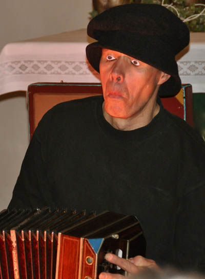 GEGENWARTen - Theater in Lichtblicken lächelnder Schatten „Die gespielten Bilder von Albrecht Walter faszinieren, erheitern und beleben das Denken. Seine geradezu heimlich, stille Art des Humors und seine innerlichst improvisierte Musik auf dem Bandoneon, der Klarinette und anderen Instrumenten sind Nahrung für Seele und Geist.“ "In Lichtblicken lächelnder Schatten" blitzen poesievolle Bilder aus dem Schattenreich des "Wer bin ich" auf. Das Theater wird zum schmunzelnden Mysterium: im "Gegenwarten" auf sich selbst. Albrecht Walter, Mime, feinsinniger Clown, Improvisationsmusiker, Raumbildner, Maler und Zeichner, hat diese Form des casilianischen Theaters - ausgehend von längeren Aufenthalten in Süditalien - für sich entdeckt und bringt sie in seinem "Zwei-Mann-Theater" als kreativen Prozess auf die Bühne: als Riccardo Muto, dem wunderlich Schweigsamen in Gegenwart und als Tullio Tardi, dem beherzten Traumtänzer im Augenblick.