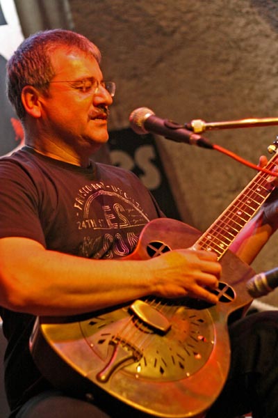 blues guitar - fingerpicking & bottleneck Seit über 35 Jahren spielt und singt Wolfgang Kalb akustischen Blues, vorwiegend Country Blues, angereichert durch Ragtimes, Gospelsongs oder auch Jazzballaden. Im Fingerpickingstil oder mit der Bottleneck-Spielweise auf der Dobrogitarre (Resonatorgitarre) interpretiert er die Lieder der alten Meister auf eigene Weise, verändert Musik und Texte und passt sie an seine persönliche Situation an. Sein Repertoire umfasst die Spielweisen seiner Vorbilder wie Blind Blake, Robert Johnson, Mississippi John Hurt und anderen Vertretern des Country Blues aus den 20er und 30er Jahren. Unüberhörbar sind allerdings auch die musikalischen Einflüsse von Muddy Waters oder von John Lee Hooker. Seine Stimme gilt als ehrlich, persönlich und authentisch, trotzdem ist er den Originalen sehr nahe. Bei Auftritten Ende der 70er bis Mitte der 90er Jahre teilte er sich die Bühne auch mit Bluesgrößen wie Champion Jack Dupree, Louisiana Red oder Blind John Davis und ist mittlerweile zu einer festen Größe der deutschen Country Blues Szene geworden. Erzählungen über den Blues, die Entstehung der Lieder und persönliche Erfahrungen ergänzen bei Konzerten die musikalische Reise durch die Geschichte dieser Musik.